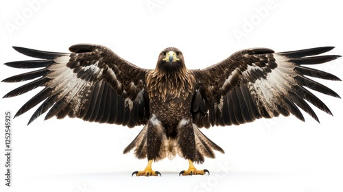 © soem, Fototapeta premium Golden eagle standing with its wings slightly open on a white backdrop