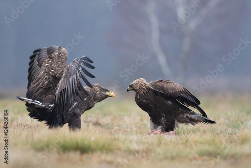 © Jarosław Kochnio, Fototapeta premium Golden eagle with prey attacked by a white-tailed eagle