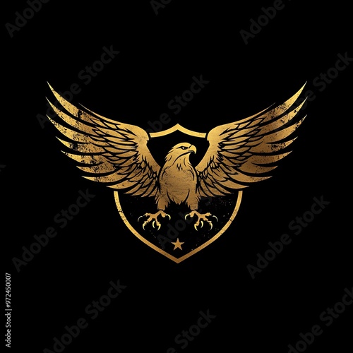 © Raffaza, Fototapeta premium Golden Eagle with Spread Wings Holding Shield with Star