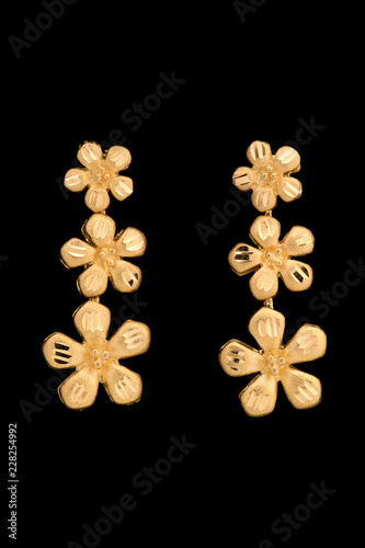© ImpressionMall, Fototapeta premium Golden earrings on a dark background