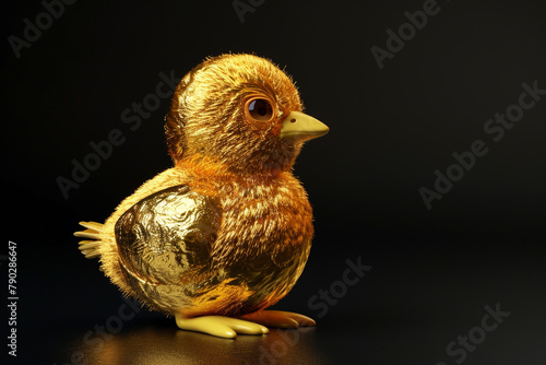 Obraz premium Golden Easter chick with shiny gold texture, isolated on black.