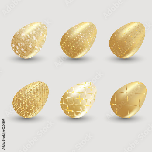© Iricat, Fototapeta premium Golden easter eggs with shadow on gray background