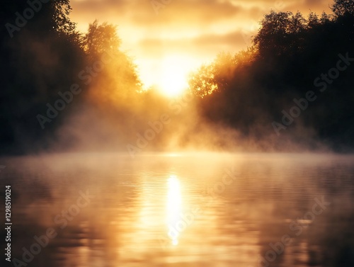© Akash, Obraz premium golden Easter light reflections mist --ar 4:3