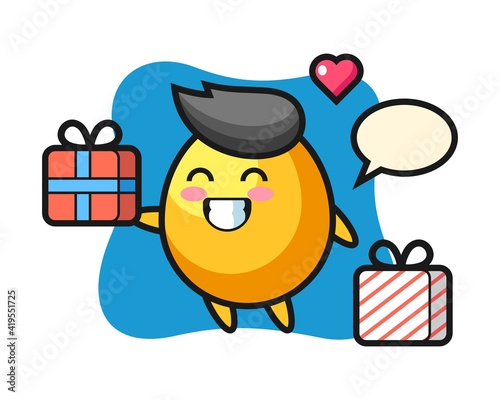 Naklejka premium Golden egg mascot cartoon giving the gift