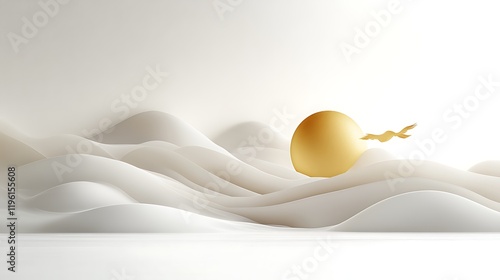 © Fajar, Fototapeta premium Golden Egg Nestled in White Wavy Landscape
