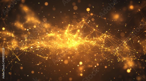 Fototapeta premium Golden energy flow, abstract background, glowing particles