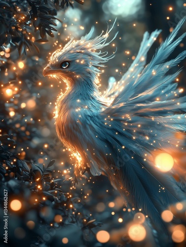 © Vadym, Fototapeta premium Golden-Feathered Phoenix Illuminating the Sky