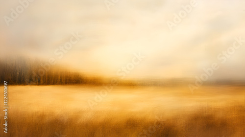 © Joesunt, Obraz premium Golden Field at Dusk: A dreamy, impressionistic photograph capturing the warm hues of a golden field at dusk, where the horizon melts into a soft, hazy sky.