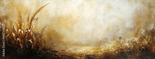 © Pumapala, Obraz premium Golden field, hazy autumn, calm