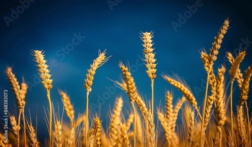 © Priya, Fototapeta premium Golden Field of Tall Wheat Against a Clear Blue Sky
