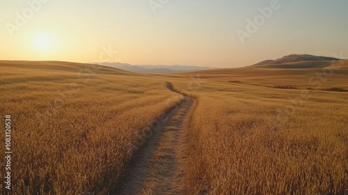 Fototapeta premium Golden fields stretching under a serene sunset glow