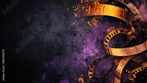 © Artyom, Naklejka premium Golden film reels on purple textured background