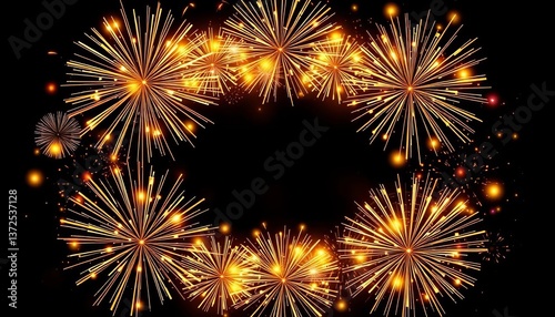 Naklejka premium Golden firework burst border, vector frame design for celebration, gold fireworks, fireworks