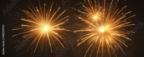 Naklejka premium Golden firework burst, vibrant yellow hues, fiery embers , festive, explosion