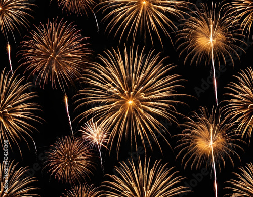 Naklejka premium Golden firework fireworks on dark black night sky texture