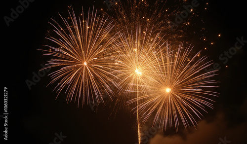 Naklejka premium golden firework sparks shine bright dark night sky magical new year celebration
