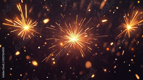 Naklejka premium Golden fireworks and bursting rockets illuminate a dark sky in this vibrant...