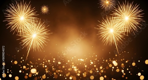© Anjuma, Naklejka premium Golden fireworks explode in a burst of light, illuminating the night sky with a warm, celebratory glow, perfect for new years eve or any special occasion