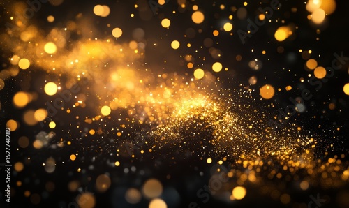 Fototapeta premium Golden fireworks exploding on a black background, with trails of sparkling...