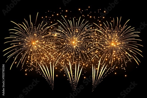 Fototapeta premium Golden fireworks in a symmetrical display on a black background