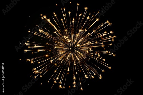 © Maryam, Obraz premium golden fireworks on black background with golden bokeh effects. MZ