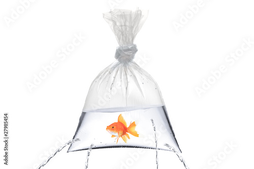 © Ljupco Smokovski, Fototapeta premium Golden fish in a bag with holes
