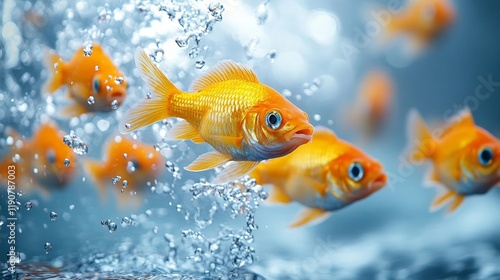 © Stocker, Fototapeta premium Golden Fish School in Clear Water. Generative AI
