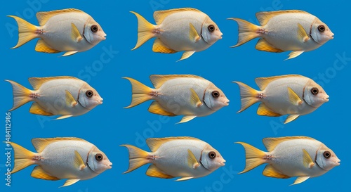 © VuongThien, Fototapeta premium Golden Fish School Vibrant Blue Underwater Scene
