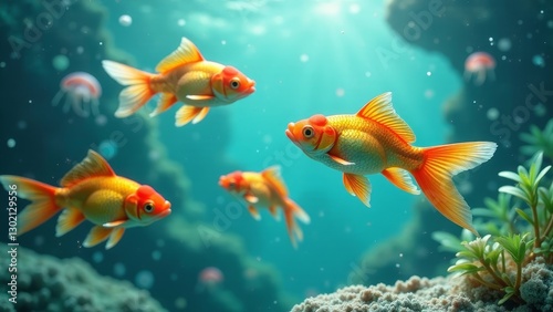 Fototapeta premium Golden fish swimming gracefully in an underwater paradise, surrounded by...