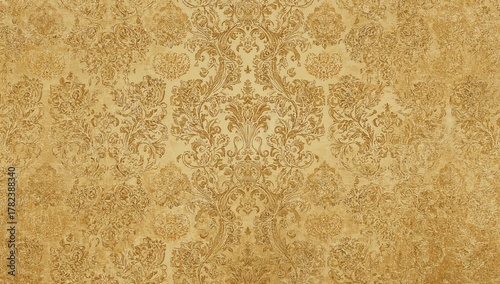 © vxnaghiyev, Naklejka premium Golden floral ornament brocade fabric design, suitable for luxurious textile applications