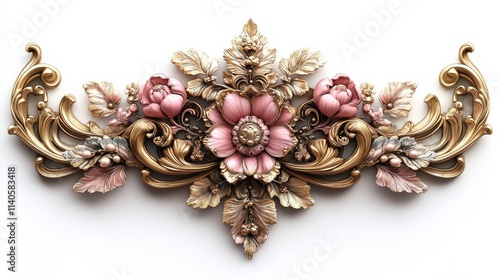 © Denys, Fototapeta premium Golden floral ornament embellishing a white background