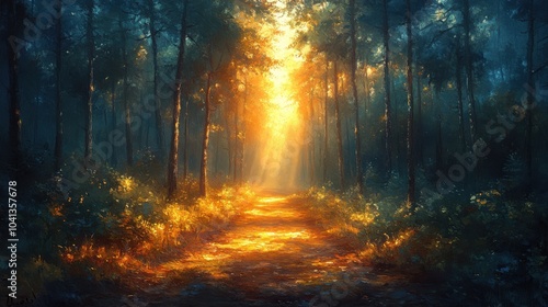 © Diegeme, Fototapeta premium Golden Forest Path