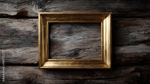 © Thares2020, Fototapeta premium Golden frame on rustic wooden background