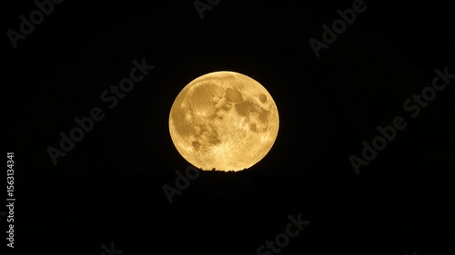 Obraz premium Golden Full Moon Rising Above Dark Forest Horizon at Night