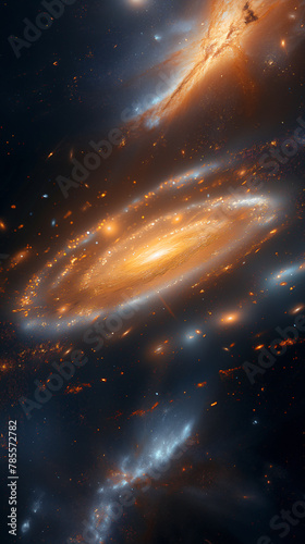 © S.JR Stocker, Naklejka premium golden galaxy with spiral arms ,space background