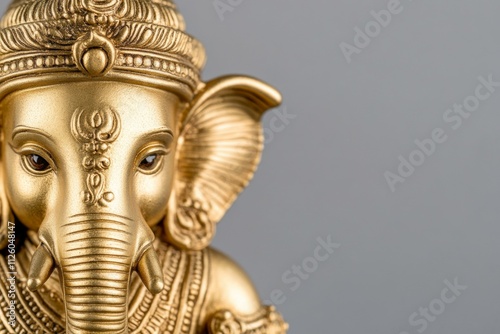 © Space Priest, Fototapeta premium Golden ganesha idol with intricate details on gray background