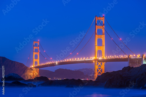 © det-anan sunonethong, Fototapeta premium Golden gate at night in San Francisco
