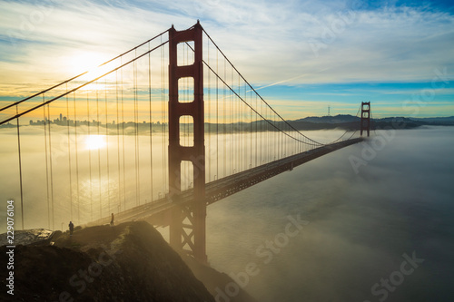 © Alexander Davidovich, Fototapeta premium Golden Gate Bride With Low Fog