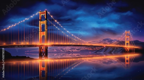 © JuliaDorian, Fototapeta premium Golden Gate Bridge at night, a mesmerizing sight for photography enthusiasts