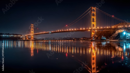 © musa, Fototapeta premium Golden Gate Bridge at Night, Reflections
