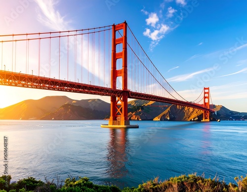 © Rejeki, Obraz premium Golden Gate Bridge at sunset over water