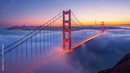 © พุฒิพงศ์ ขาวทอง, Obraz premium Golden Gate Bridge Fog Sunrise San Francisco Bay