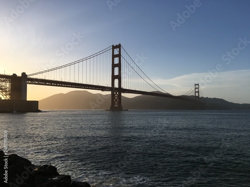 Naklejka premium Golden Gate Bridge o zachodzie słońca.