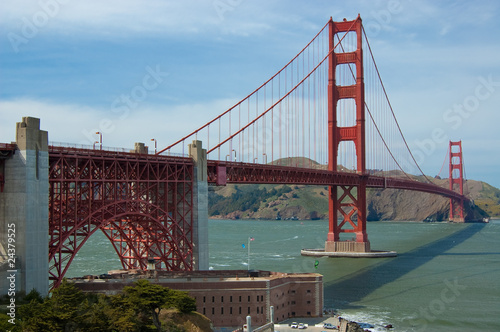 © eijiuedaphoto, Naklejka premium Golden Gate Bridge on blue sky with white clouds