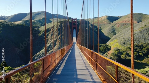 Obraz premium Golden Gate Bridge pedestrian walkway with scenic hillsides.