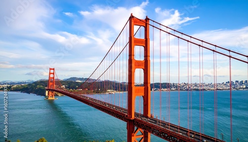 © Bara, Obraz premium Golden Gate Bridge spanning a bay, dramatic view