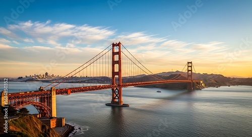 Naklejka premium Golden Gate Bridge Sunset with San Francisco.