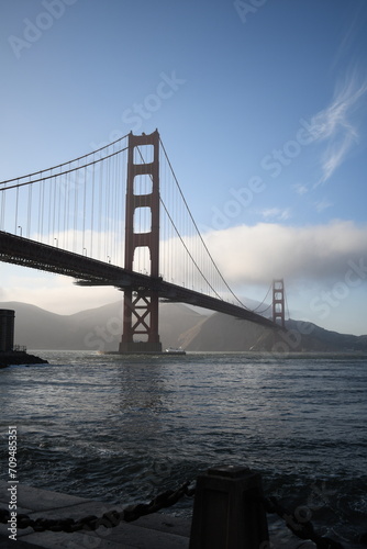 Fototapeta premium Golden Gate Bridge with Clear Blue Skies and Vibrant Daylight