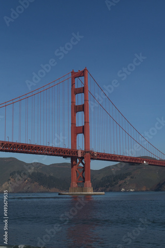 © Fernando, Fototapeta premium Golden Gate Tower and Suspension Cables Minimalist View