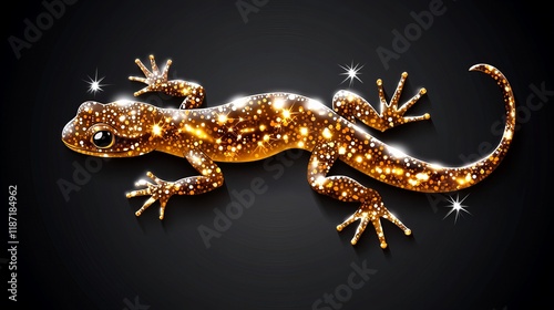 Naklejka premium Golden Gecko: Sparkling reptile on a black background. Shimmering details and elegant design.